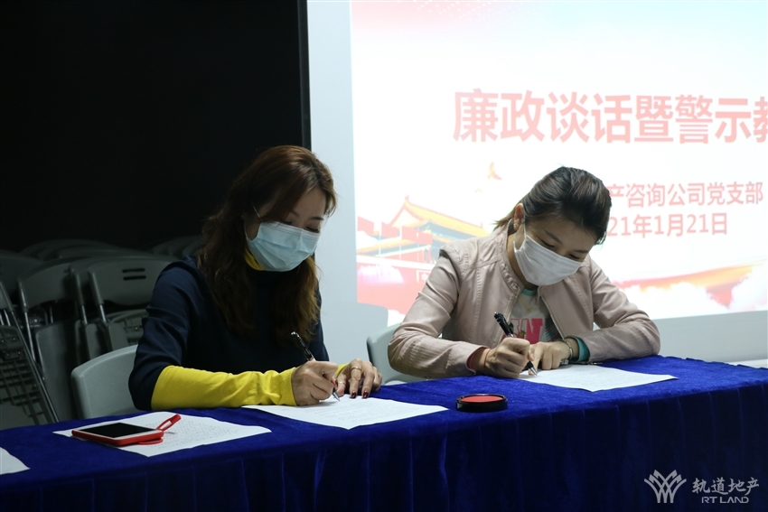活動中,軌道地產(chǎn)咨詢公司黨支部書記、董事長劉燕組織與會人員學(xué)習(xí)了《關(guān)于兩起違反中央八項規(guī)定精神問題典型案例的通報》等相關(guān)文件,并集中觀看了警示教育片《縣委書記為何滑向深淵》。軌道地產(chǎn)咨詢公司各部門、各項目負(fù)責(zé)人還與黨支部書記劉燕簽訂了《黨風(fēng)廉政建設(shè)承諾書》。