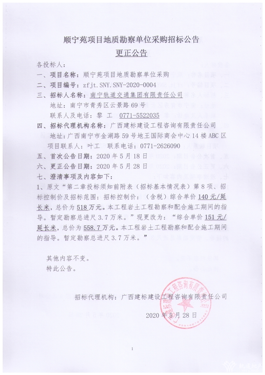 順寧苑項目地質(zhì)勘察單位采購招標公告更正公告